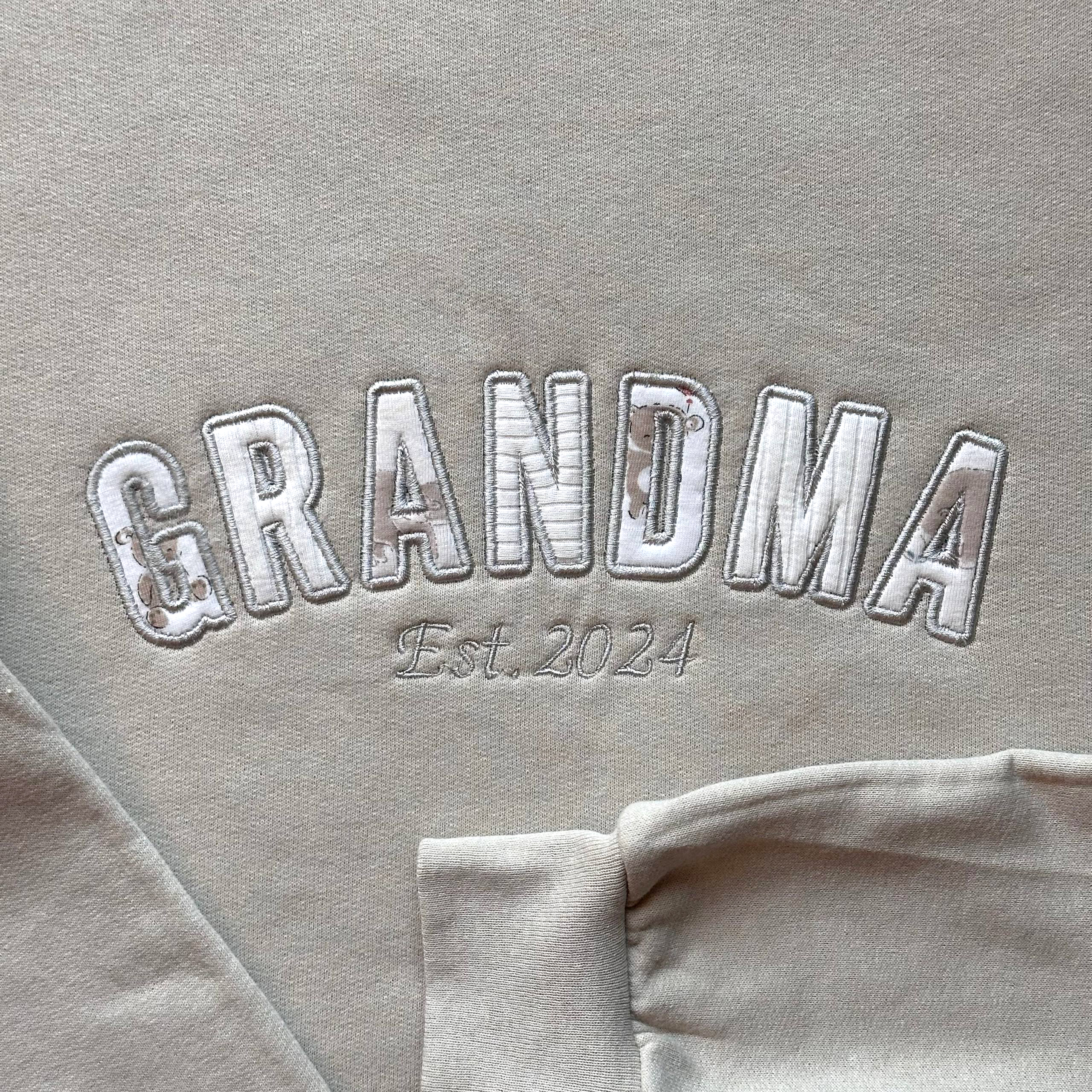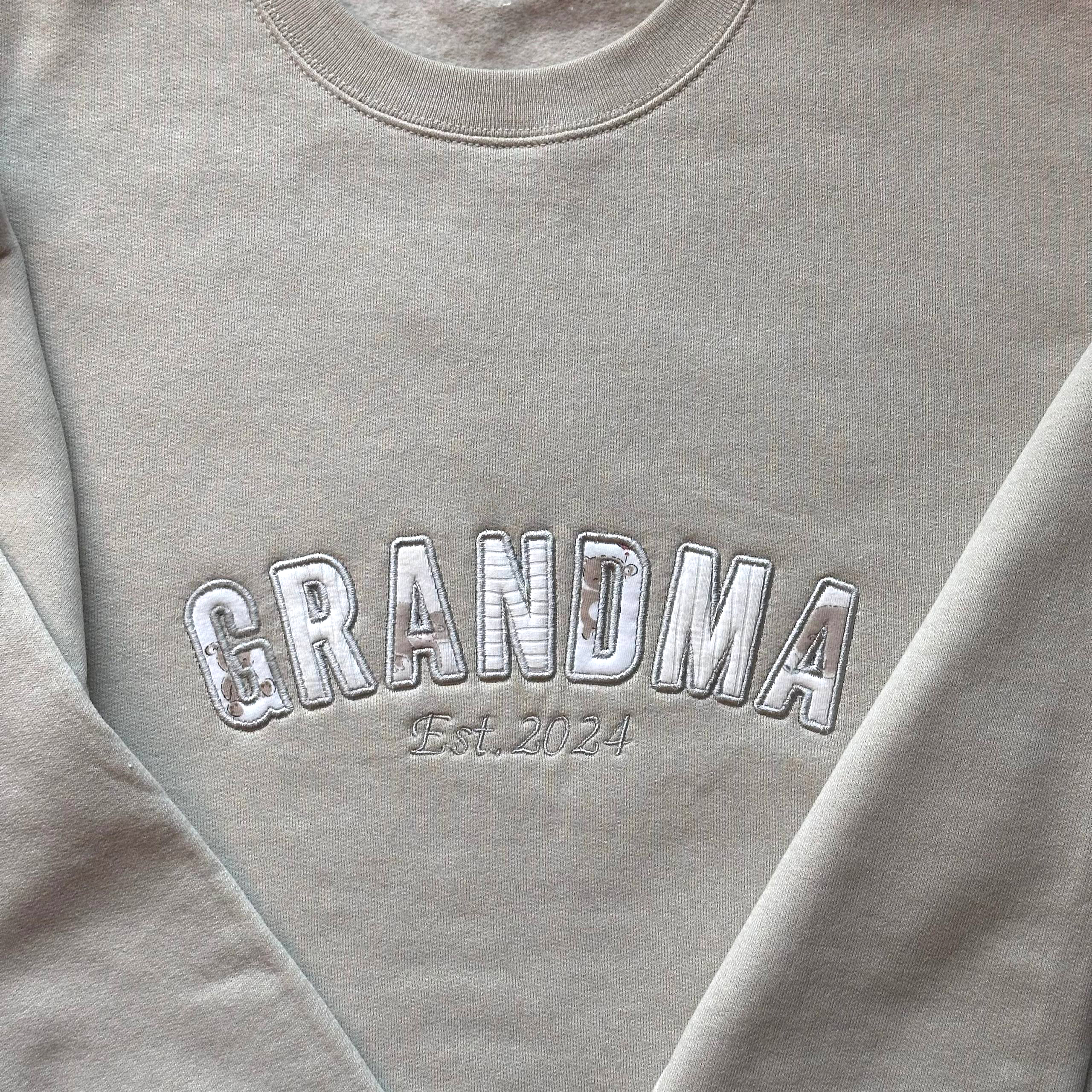 This personalized hoodie or sweatshirt features appliqué letters such as